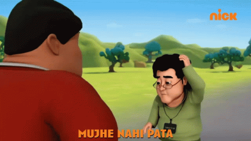 Motu Patlu's director character is confused, scratching his head and shrugging, saying 'I don't know'.