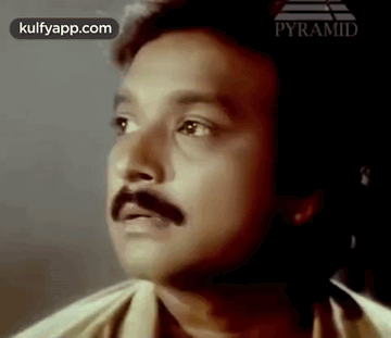 Actor Karthik's expressive reaction from the Tamil movie Poovarasan, captured in a close-up.