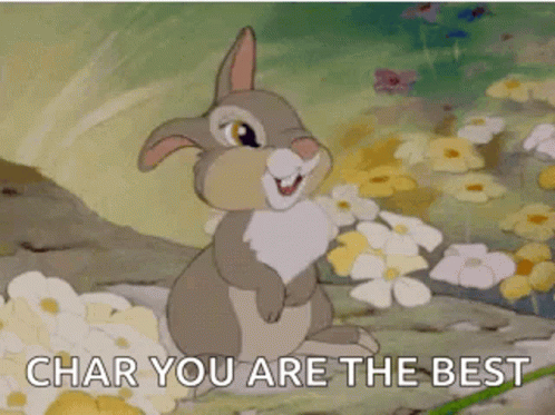 Thumper the rabbit from Bambi expresses affection with 'Char You Are The Best' text.
