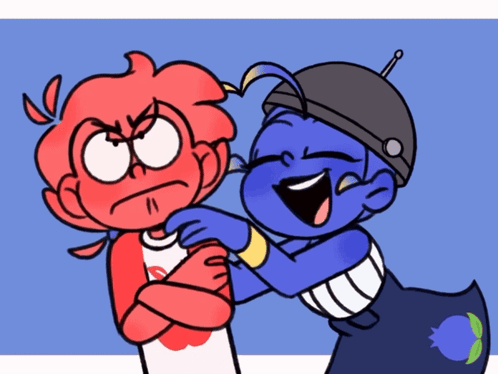 Annoyed Torajo being hugged by a laughing Morazulmi in Mundo Do Torajo Morajo, a funny cartoon interaction.