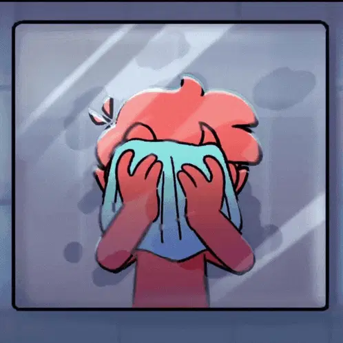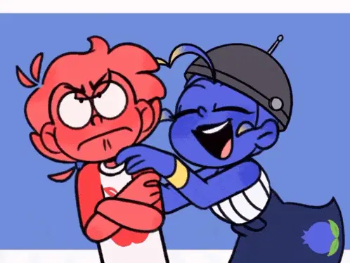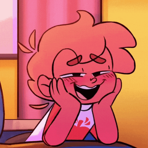 Mundo Torajo Algorithomus with a happy, shy expression, hands on cheeks and blushing.