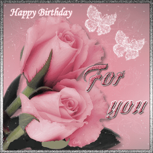 Mupke's beautiful birthday card featuring vibrant pink roses and delicate butterflies, wishing a happy birthday.