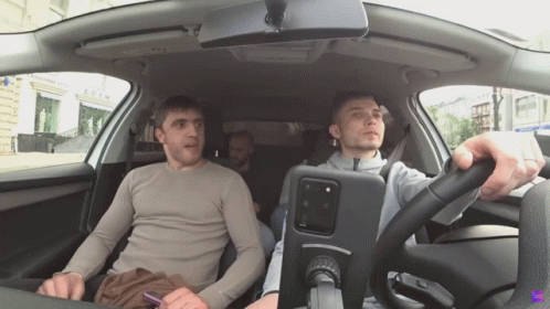 Мурад дагестанец and friends in a car, with Мурад speaking animatedly from the passenger seat.