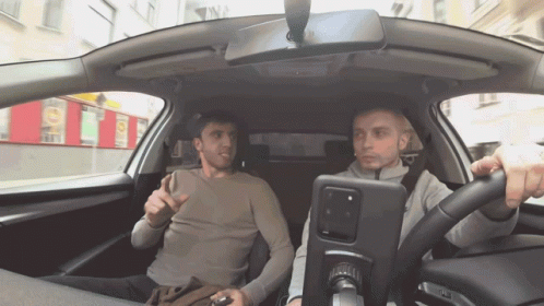 Murad's emotional reaction captured in a taxi, with another man holding a phone.