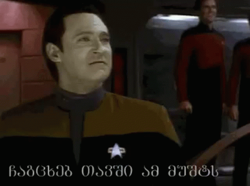Data from Star Trek makes a threatening fist gesture, expressing anger.