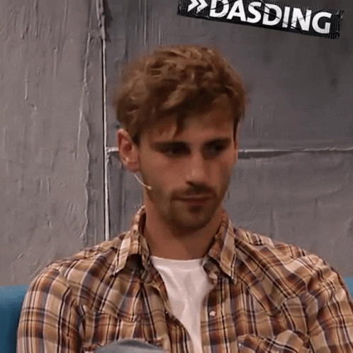 Fynn Kliemann, wearing a plaid shirt, reacts with excitement and happiness to music during a DASDING interview.