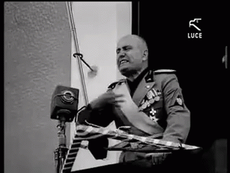 Benito Mussolini, the Duce, delivers a passionate speech from a balcony in this historical footage.