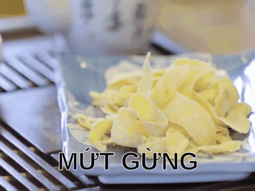 Delicious candied ginger slices, a traditional Vietnamese treat, beautifully arranged on a plate.