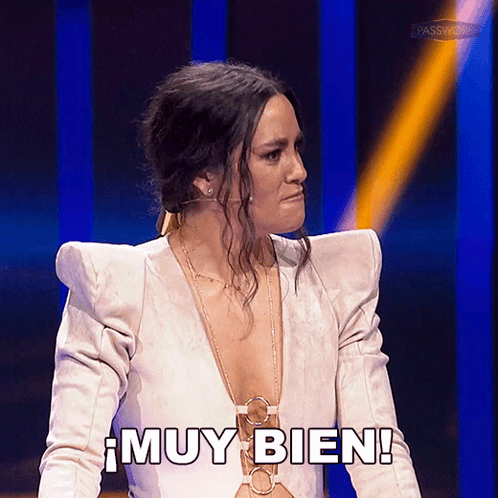 Cristina Pedroche enthusiastically exclaims '¡Muy Bien!' on stage during the show Password.