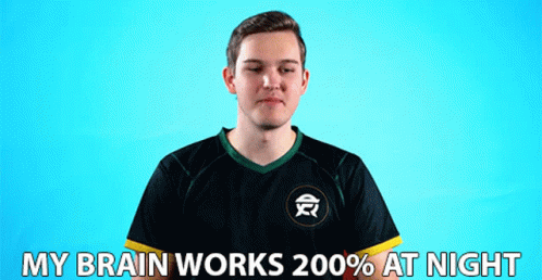 Esports player Santorin in a FlyQuest jersey, with the text 'MY BRAIN WORKS 200% AT NIGHT' displayed.