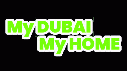 Animated logo for My Dubai My Home by Danube Properties, featuring green text on a black background.