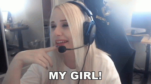 Emuhleet, wearing headphones and a mic, smiles and says 'My Girl!' in a playful moment.