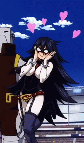 Midnight from My Hero Academia shows an adorable, loving expression with hearts floating around her.