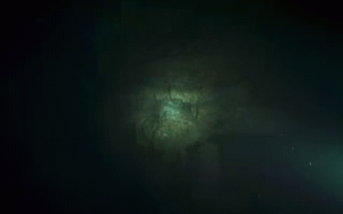 A Mythosaur's eye and tusk revealed in the dark depths, a creature from Mandalorian lore.