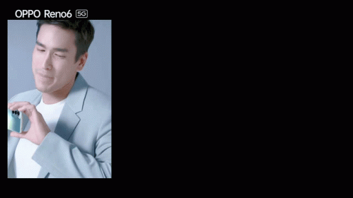 Thai actor Nadech Kugimiya showcases the new OPPO Reno6 5G smartphone in a stylish split-screen presentation.