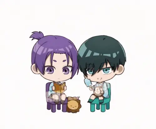 Nagi Seishiro and Reo Mikage from Blue Lock share a tender moment, with 'kayriri' on screen.