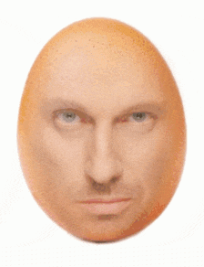 An egg with the superimposed face of Russian actor Dmitry Nagiev, winking and smiling on a white background.