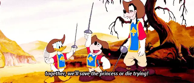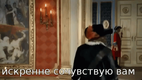 Dmitry Nagiev in musketeer attire walks in an ornate room, with the caption "I sincerely sympathize with you".
