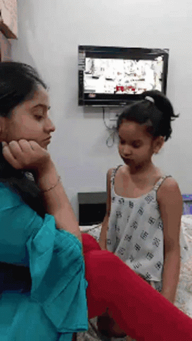 A little girl performs a lively Nagin dance for a woman, showing off her energetic moves.