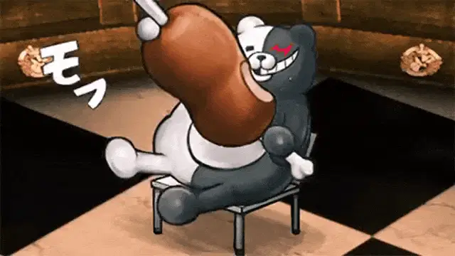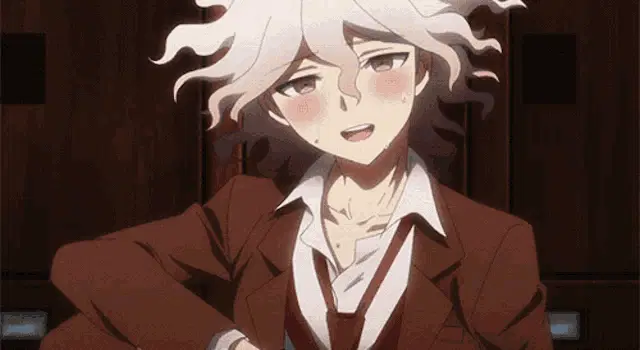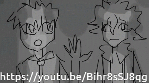 Black and white animation featuring Nagito Komaeda and Hajime Hinata from Danganronpa.