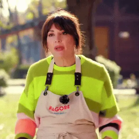 Nagore Robles laughing heartily while wearing a leopard print dress, gesturing with her hands.
