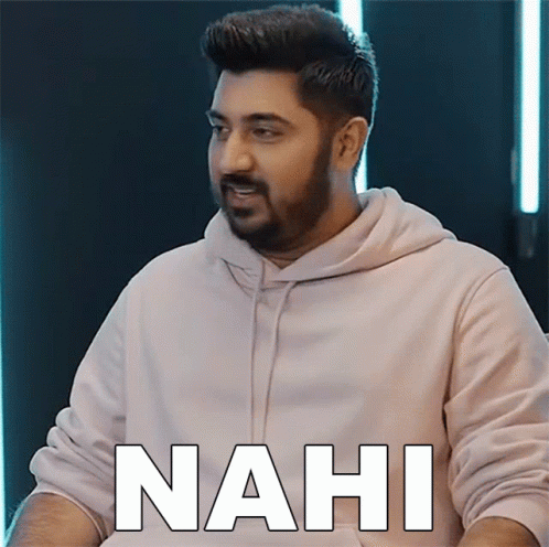Rushindra Sinha, a man with a beard, wearing a light hoodie, with the word 'NAHI' displayed prominently.