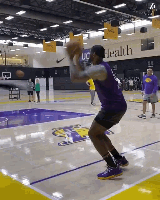 LeBron James celebrates a successful shot on the basketball court with a 'Nailed It' gesture.