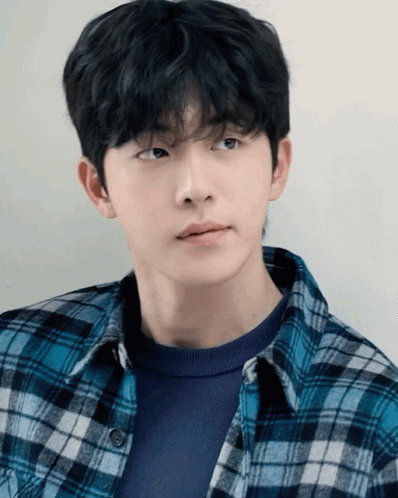 Nam Joo Hyuk 남주혁, the handsome model and actor, looking stylish in a blue plaid flannel shirt.