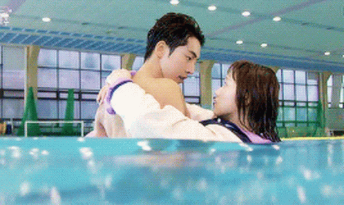 Nam Joo Hyuk and Kim Bok Joo share a sweet, intimate moment in a swimming pool, embracing and looking into each other's eyes.