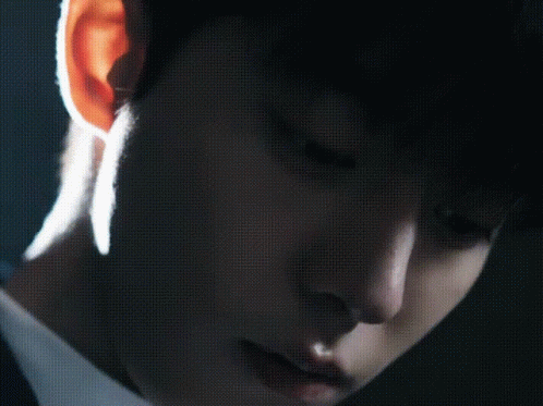 Nam Joo Hyuk looks up with an intense gaze, dramatically lit from behind, wearing a white turtleneck and dark jacket.
