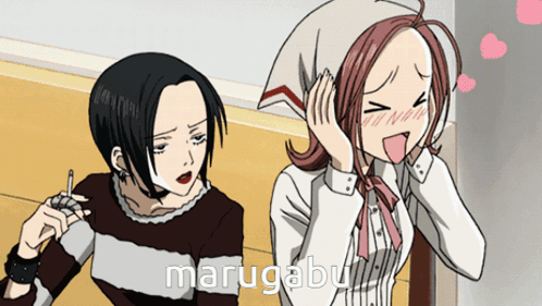 Nana Osaki and Nana Komatsu in an anime scene, with Nana Osaki smoking and Nana Komatsu blushing.