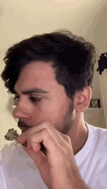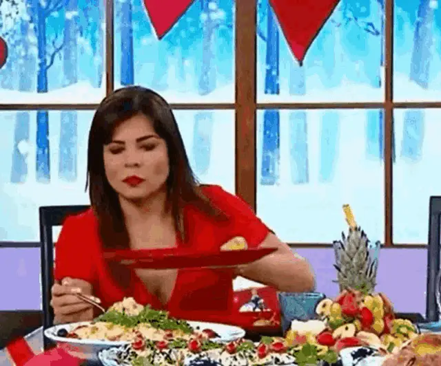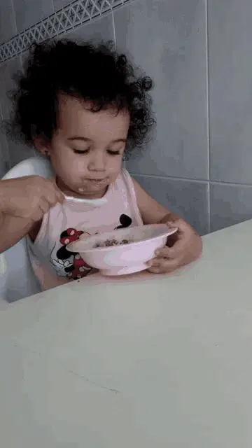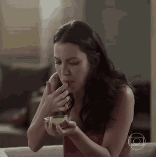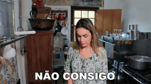 Cecilia Padilha in a rustic kitchen, with the text 'Não Consigo Parar De Comer' (I can't stop eating) overlaid.
