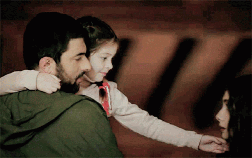 Engin Akyürek, Neslihan Atagül, and Nareçelebi share a heartwarming family hug in this emotional scene from Sefirin Kizi.
