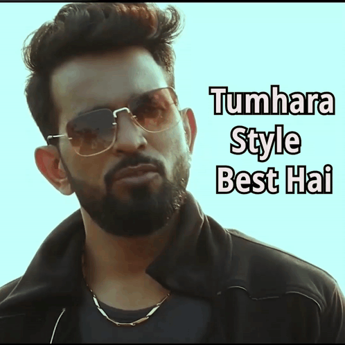 Yudi (Yudhisthir Patra) in sunglasses and beard, with the caption 'Tumhara Style Best Hai' (Your Style Is Best).