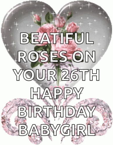 Nasserq's sparkling pink heart with glitters and roses, a lovely animated birthday card design.