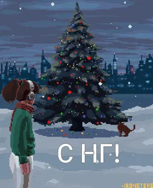 A festive Christmas card with a decorated tree branch, wishing 'Happy Upcoming Old New Year' and 'Much Happiness'.