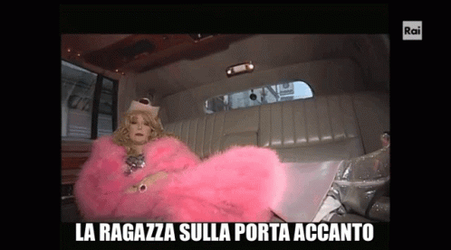Natasha Ottavo Nano, from 'La Ragazza Sulla Porta Accanto', in a pink fur coat inside a limousine.