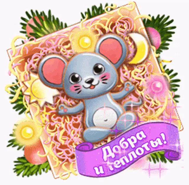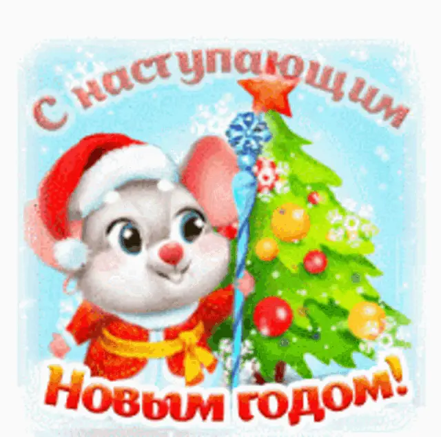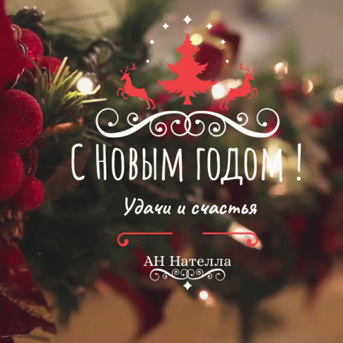 New Year greeting card from AN Natella wishing good luck and happiness, featuring festive decorations.