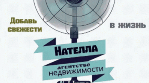 Animated ad for Natella Real Estate Agency featuring an electric fan and Russian text 'Add freshness to life'.