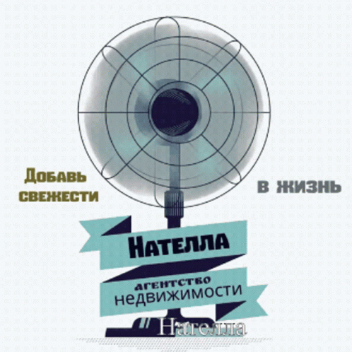 An illustration of an electric fan with ribbons promoting "Natella Real Estate Agency" and "Add freshness to life."