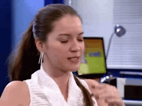 Nathalia Dill, as part of Malhação, appears stressed, holding her head in her hand.