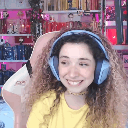 Nathytalendo, the streamer, reacts with a big smile and laughter while wearing headphones during a live stream.