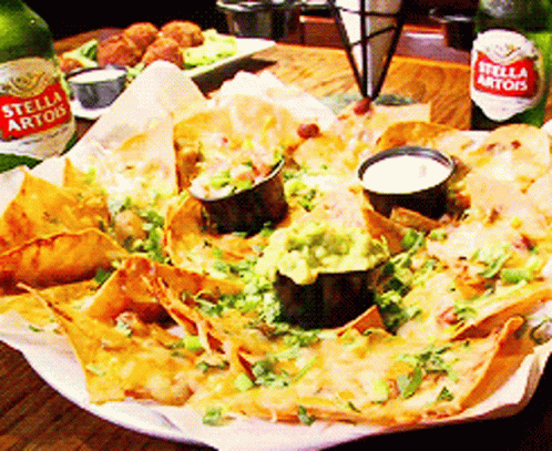 A mouth-watering plate of loaded nachos, perfect for celebrating National Nacho Day, with Stella Artois.