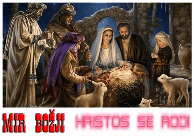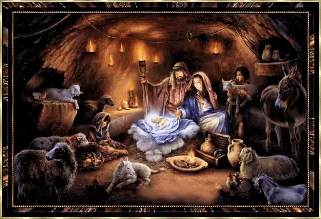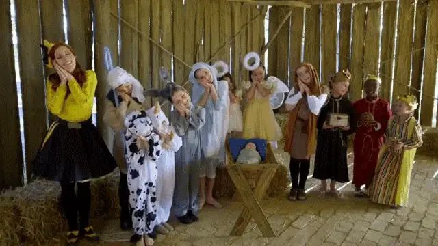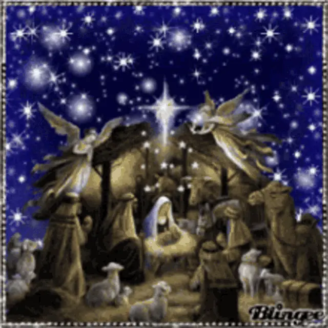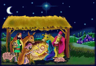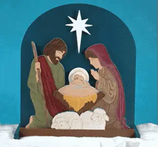 A black and white drawing depicting the Nativity's Three Kings playing instruments.