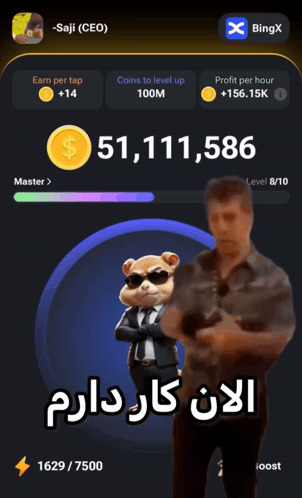 A person plays a Hamster Kombat-like tapping game on BingX, with the caption 'I have work now'.