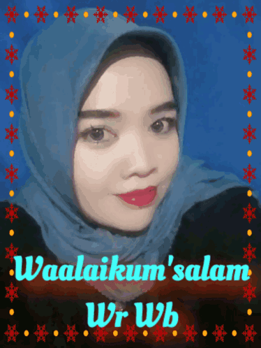 Naura Itachi featured in a stylized image with a hijab, green lips, and the greeting 'Waalaikum's salam Wr Wb'.