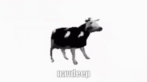 A black and white animated cow dances with the name 'navdeep' displayed, creating a popular meme.