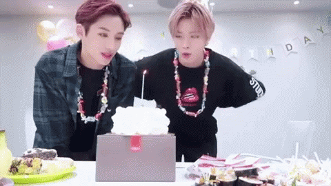 NCT members Johnny, Taeyong, Yuta, Taeil, and others celebrate a birthday, blowing out a candle on a cake.