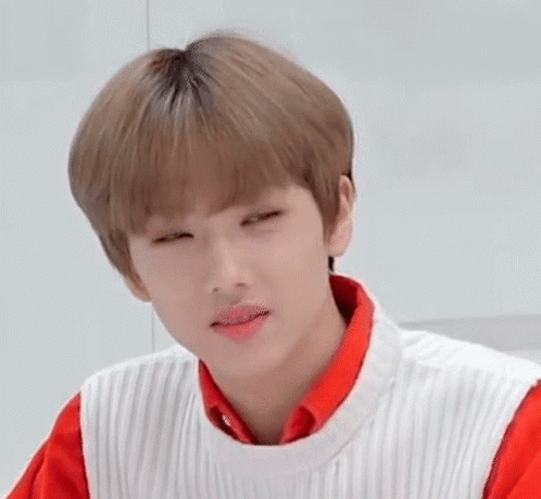 NCT's Park Jisung makes a funny, slightly disgusted face, scrunching his nose and looking to the side.