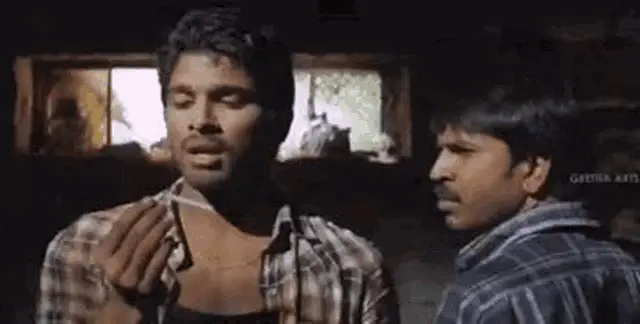 Brahmanandam and a group of people sharing food on the ground in a dark setting.